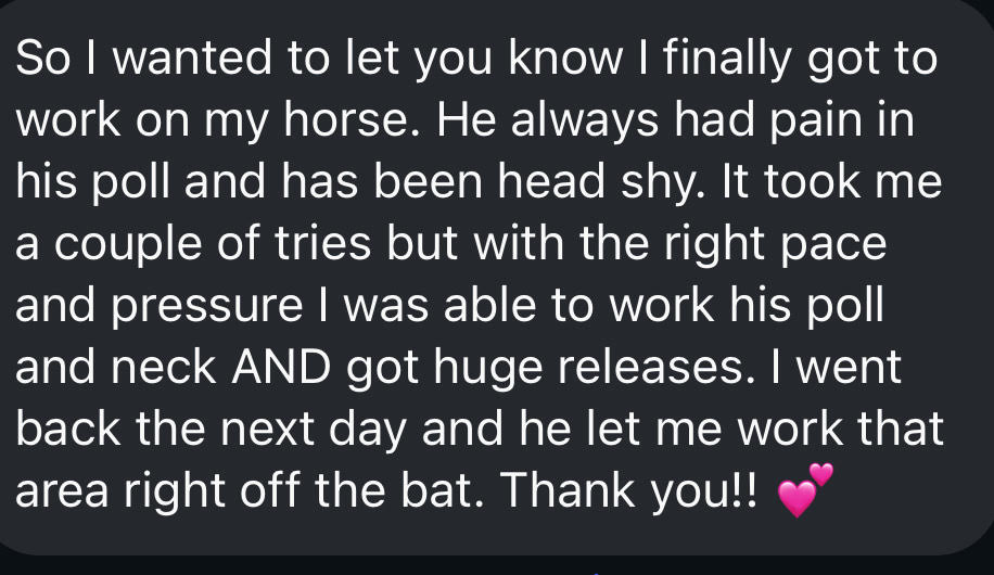 If it weren't for the online academy, I wouldn't have been able to work through my horses back pain. I do not have the time to take an in person course, so this was my best option and WOW it does not disappoint. Each technique is easy to learn and so effective.