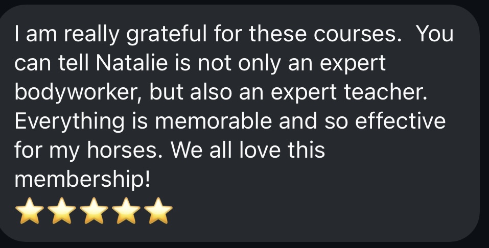 I have yet to find a resource this great! I have learned so much and my horses respond really well to all of the techniques. I think that this is a must have membership for every horse owner. The videos are clear and effective, and Natalie is so helpful when needed!